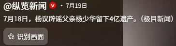 然而杨少华走了才五个月,他的五儿子杨议就在近日有了新的举动。
