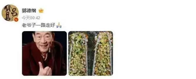 7月10日凌晨,郭德纲通过微博发文悼念“老爷子一路走好”。