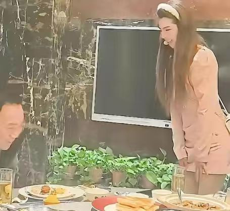 对方身着粉色超短裙配皮草,行三鞠躬敬茶礼。